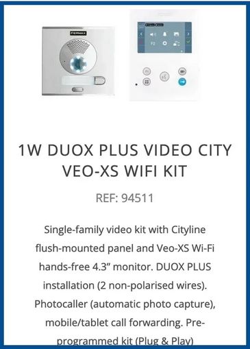 The video kits for single family homes and public premises (businesses, offices, stores, etc) are complete work-ready equipment sets that include all the necessary material for installation and operation in a single reference.In addition, to complete and to customize the installation, FERMAX allows choosing from a broad selection of additional options.